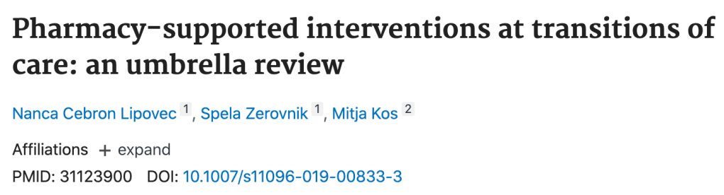 Pour en savoir plus: Cebron Lipovec N, Zerovnik S, Kos M. Pharmacy-supported interventions at transitions of care: an umbrella review. Int J Clin Pharm. 2019;41(4):831-852. doi:10.1007/s11096-019-00833-3
