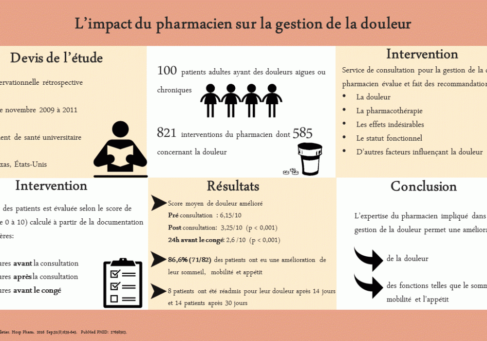 - Étude contrôlée randomisée réalisée dans 207 pharmacies communautaires du Québec, Canada.