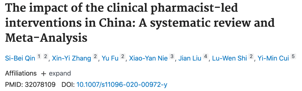 Objectif: Étudier l’impact des services de pharmacien clinique sur la durée d’hospitalisation, de réadmission et de mortalité des patients en Chine.