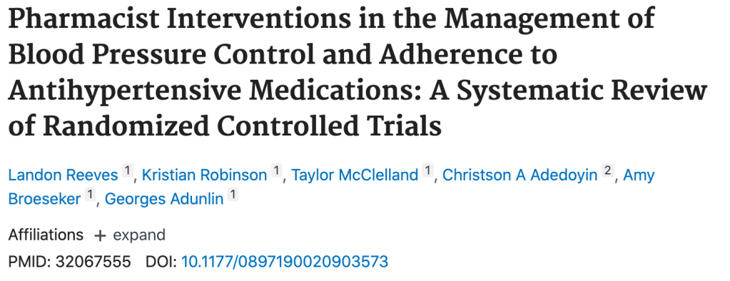 Objectif: Vérifier l’efficacité des interventions des pharmaciens pour améliorer le contrôle de la pression artérielle et l’adhésion aux médicaments chez les patients souffrant d’hypertension.