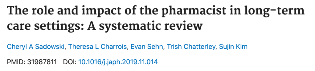 Objectif: Évaluer l’effet des interventions en pharmacie sur les médicaments, le système de santé et les résultats cliniques chez les personnes âgées vivant en centre de soins de longue durée (CHSLD). Déterminer si les CHSLD impliquant un pharmacien, par rapport à l’absence de pharmacien, ont amélioré les résultats des médicaments, cliniques ou du système de santé à l’aide d’études randomisées ou quasi-expérimentales.