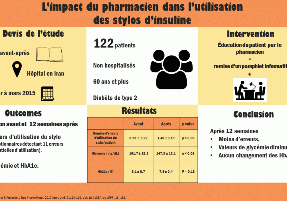 - Les rôles et retombées du pharmacien sur la prise en charge des patients diabétiques sont très bien documentés. Nous avons recensé quelques études indexées dont PMID21787031, PMID22672148 et PMID22147352.