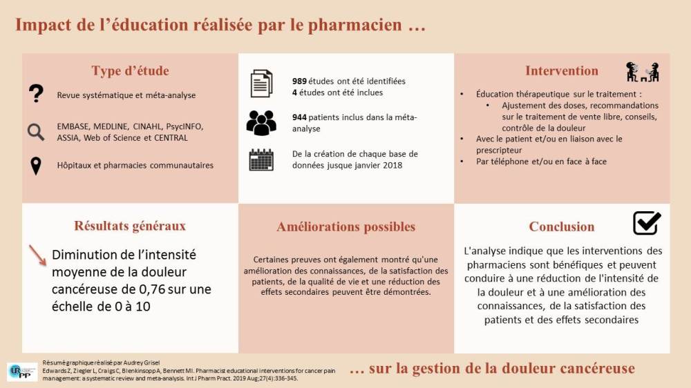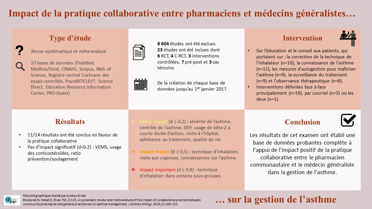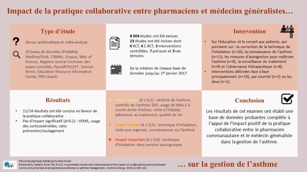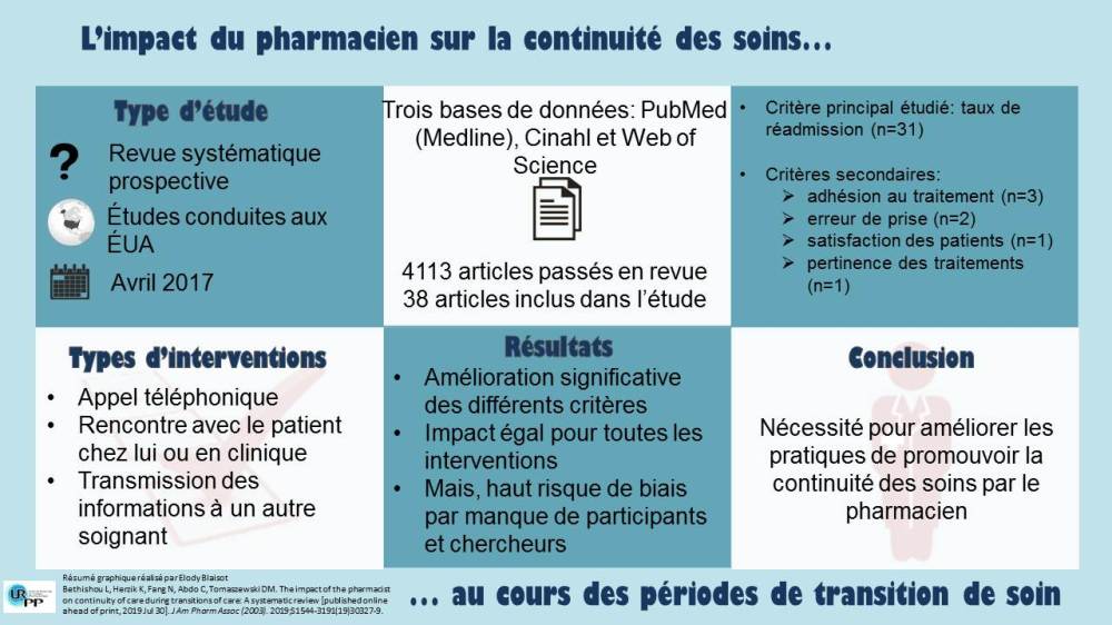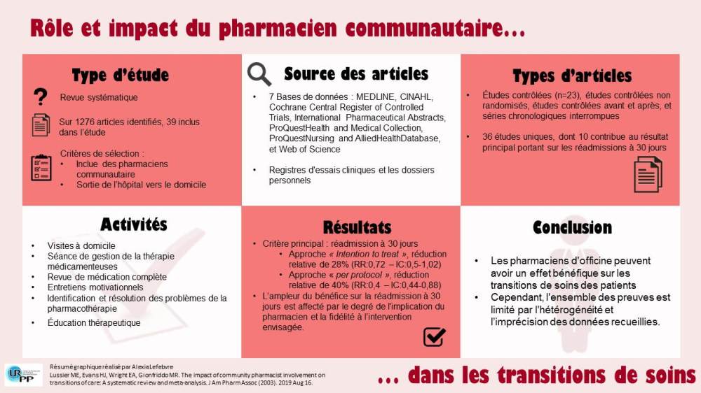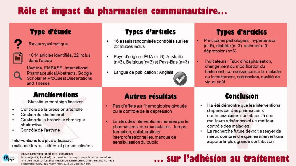 Le blogue Impact Pharmacie présente périodiquement des résumés visuels des articles clés mettant en valeur les rôles et les retombées du pharmacien et ses collaborateurs.